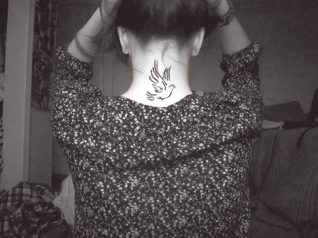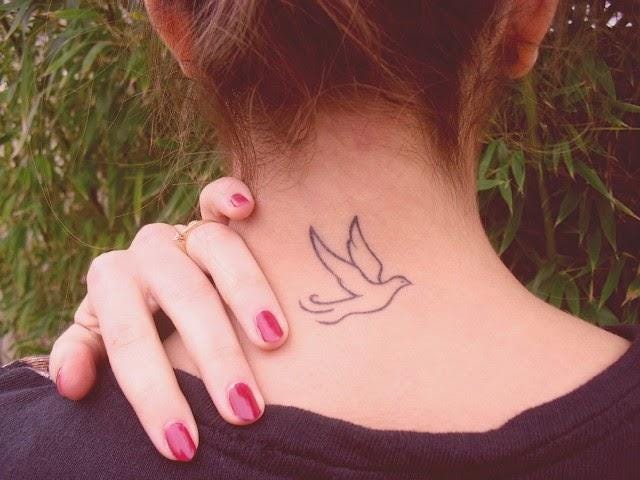 10. Xăm hình chim bồ câu dễ thương ở phía sau cổ.