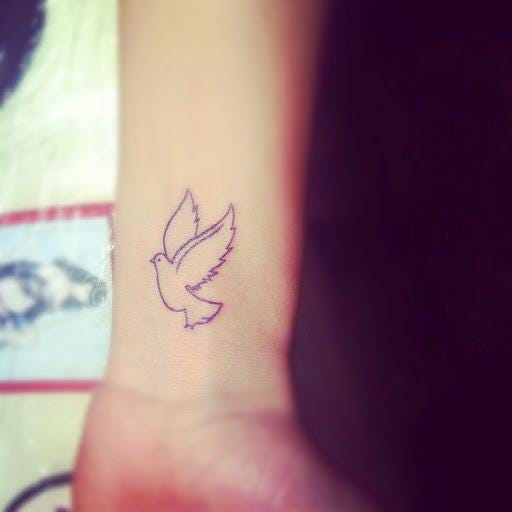 13. Hình xăm chim bồ câu đơn giản, kích thước nhỏ là sự lựa chọn thông minh dành cho những ai yêu thích xăm hình, yêu thích loại chim này nhưng không có khả năng chịu đau. Qúy vị có thể chọn để xăm lên vị trí nào tùy thích trên cơ thể mình nhé.