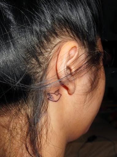 29. Đây là hình xăm chim bồ câu dễ thương phía sau tai.