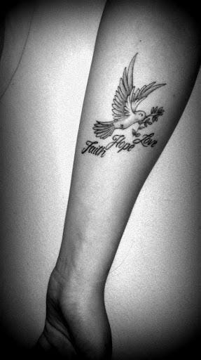 18. Hình xăm chim bồ câu càng trở nên đặc biệt hơn khi chúng được kết hợp với các dòng chữ thể hiện châm ngôn sống cũng như thông điệp mà bạn muốn gửi tới mọi người xung quanh.